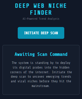 The Deep Web Niche Finder is a powerful research tool designed to explore the deep web — areas of the internet not indexed by standard search engines — to uncover hidden niches and specialized content. Ideal for marketers, researchers, and entrepreneurs, this tool uses AI-powered algorithms and advanced data scraping to deliver: